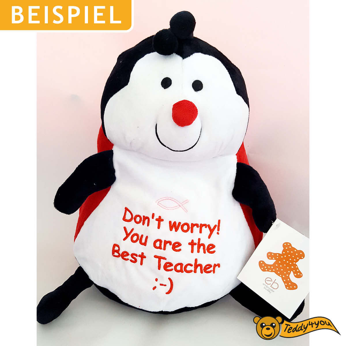 Plüschtier Marienkäfer mit Namen und Geburtsdatum bestickt